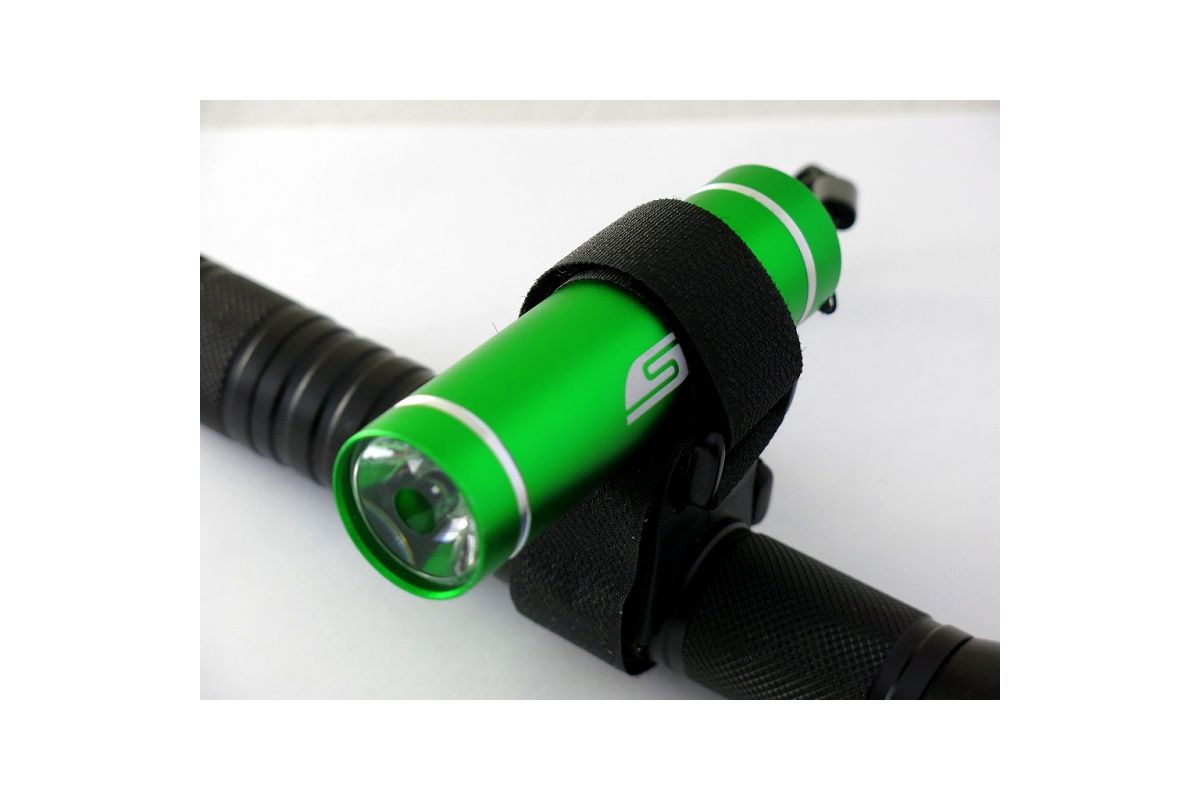 Велосипедный светодиодный фонарь, можно использовать также в качестве карманного фонаря. Фонарь выполнен из качественного алюминия с защитным анодированием корпуса. Влагозащищённый — стандарт IPX6. Фонарь снабжен современным светодиодом мощностью 1 Ватт. Мощность светового потока 60 люмен, дальность эффективного излучения света 100 метров. Размеры/вес фонаря: 90мм *26мм; 40грамм (без батарей).