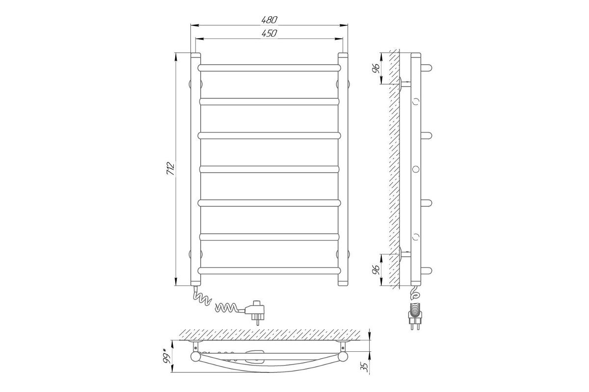 Полотенцесушитель электрический лесенка Микс П7 450*700, 99 Вт, подключение слева, гарантия 5 лет, нерж. cталь AISI 304. Терморегулятор: на вилке.