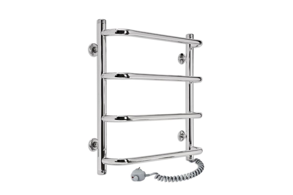 Полотенцесушитель электрический лесенка Стандарт П4 , 450х500. 71Вт, подключение справа, сухой ТЭН, гарантия 5 лет, нерж. cталь AISI 304. Терморегулятор: на вилке.