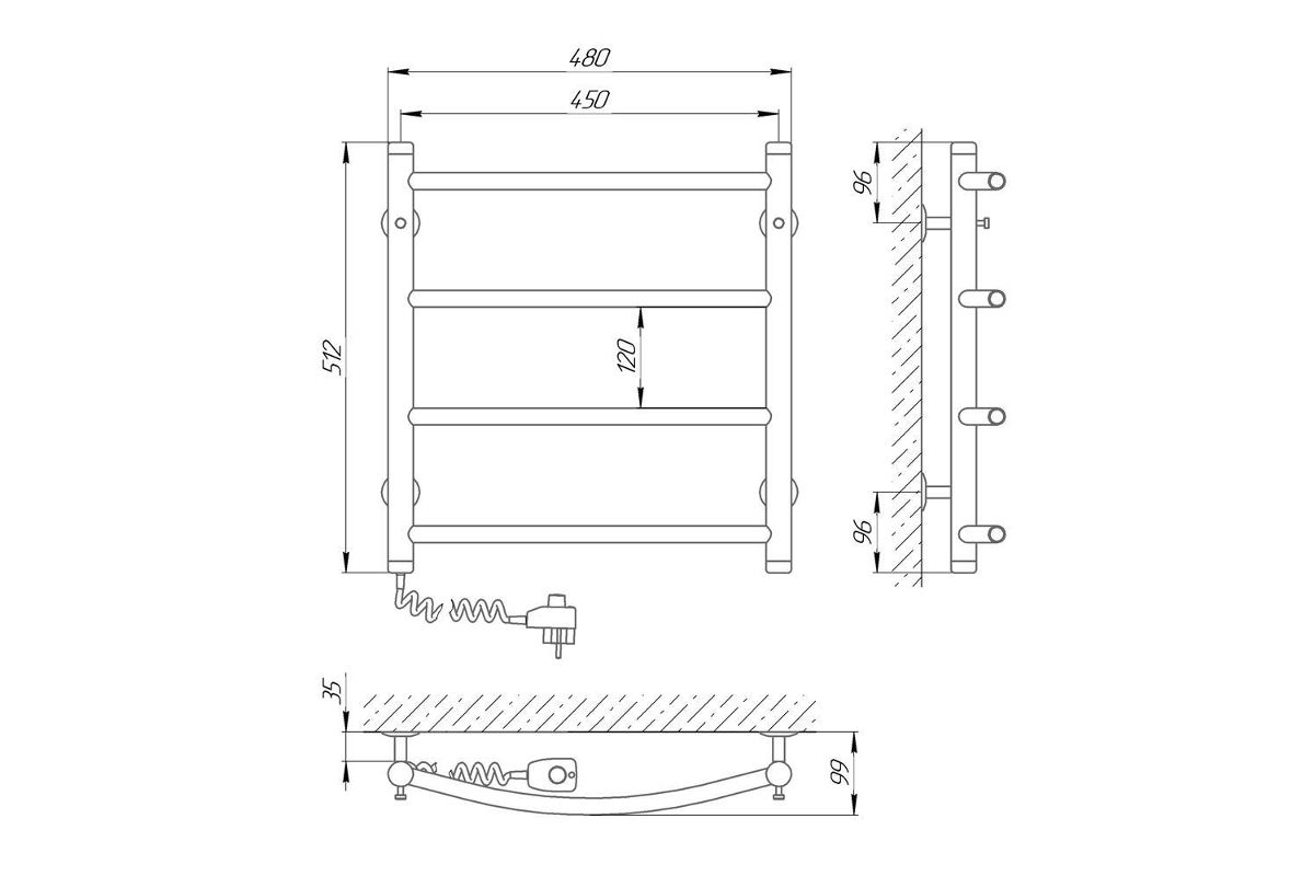 Полотенцесушитель электрический лесенка Классик П4 450х500, 61Вт, подключение слева, сухой ТЭН, гарантия 5 лет, нерж. cталь AISI 304. Терморегулятор: галетный регулятор (крутилка) на стойке.