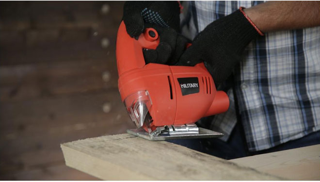 MILITARY JS500 – лобзик для домашнего мастера. Пилит дерево, металл, пластик, ламинат и другие материалы. Делает распилы вдоль, поперек и под углом.