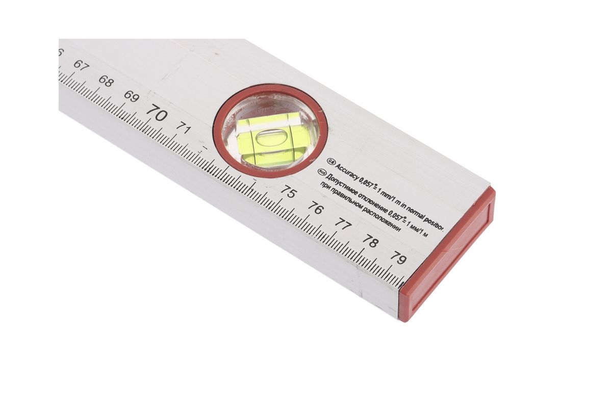 Корпус уровня изготовлен из прямоугольного анодированного алюминиевого профиля. Вес погонного метра – 0,17 кг. Имеет анодированное покрытие. Пластмассовые заглушки на обоих концах. Модель имеет три акриловых глазка для проверки отклонений по горизонтали, вертикали и под углом 45 градусов. Точность измерений – 1 мм м (0,057 градуса).