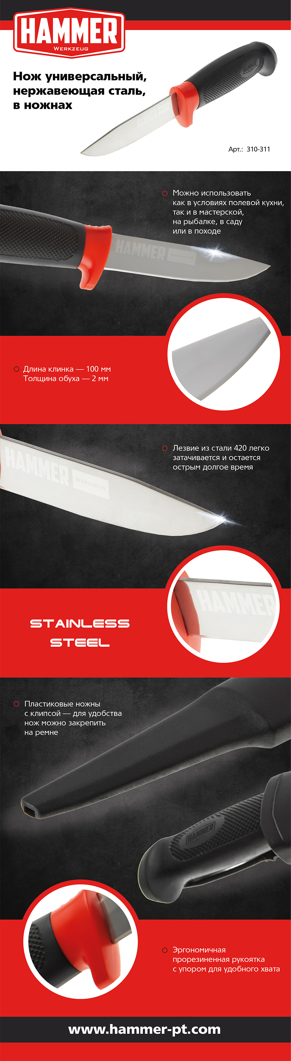 - Пластиковые ножны с клипсой - для удобства нож можно закрепить на ремне;