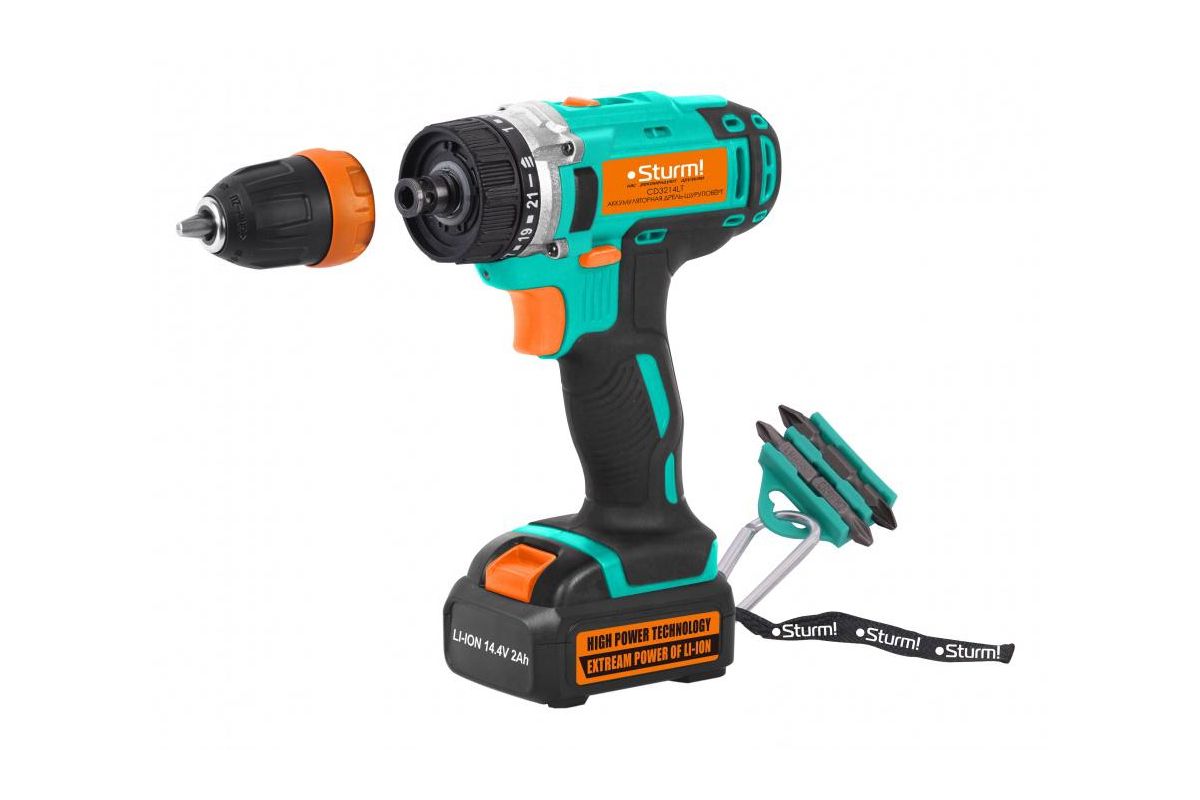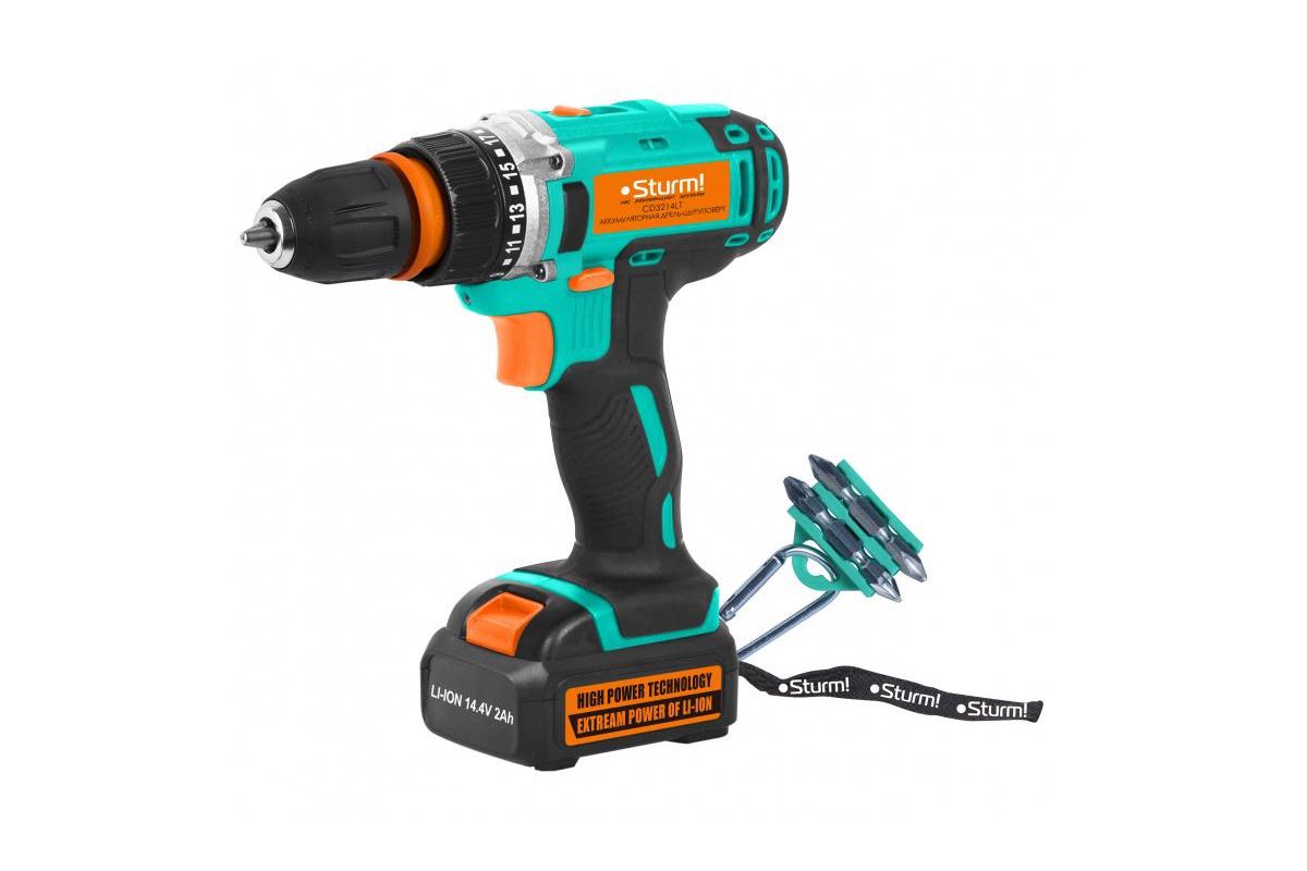 CD3214LT Дрель акк. Sturm! 14В, Li-Ion, 2 скор., 2 акк., 2,0 Ач, зар. 1ч. СМЕН ПАТРОН, кейс; - Компактный дизайн - Благодаря использованию Li-Ion аккумулятора значительно уменьшен вес инструмента - Встроенная светодиодная подсветка позволяет работать в у