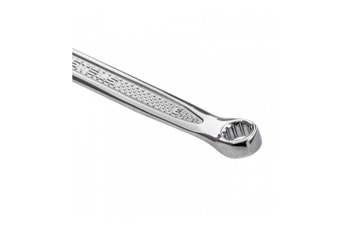 Комбинированный ключ 6 мм CrV, антислип STELS 15243 имеет высокую прочность и легко справляется с крупным крепежом.