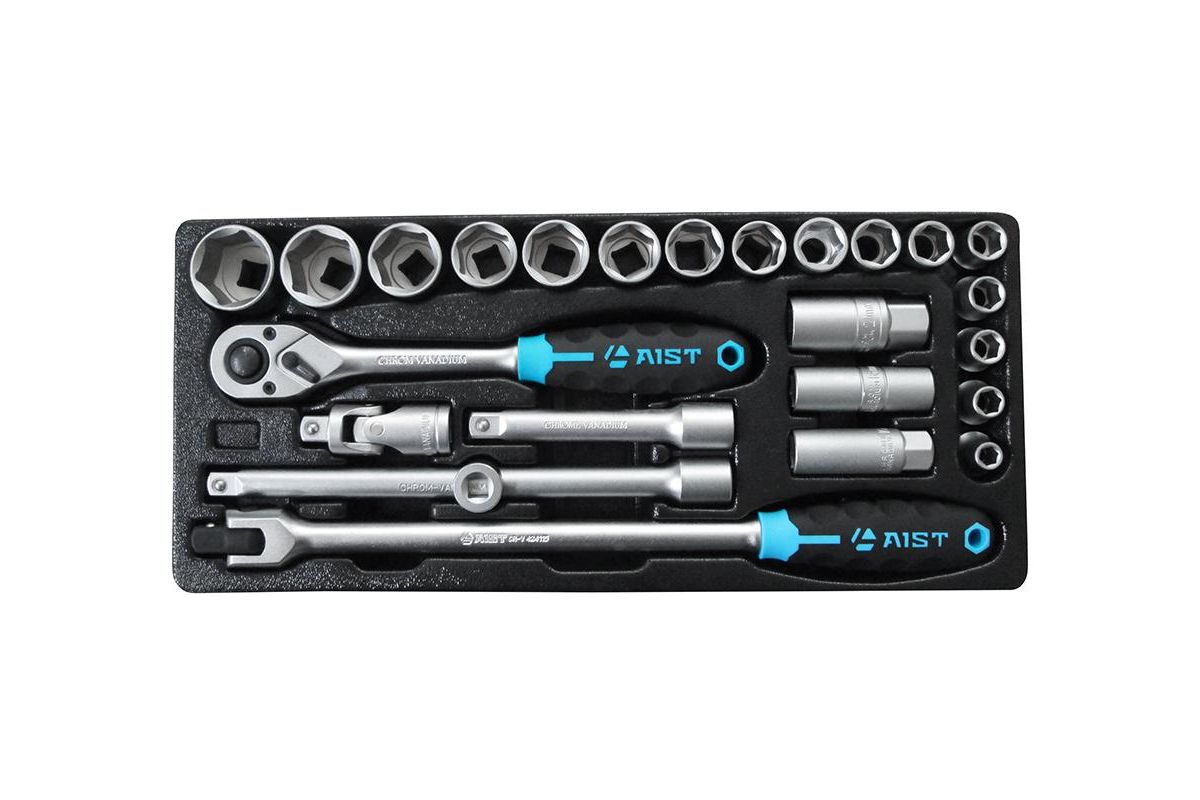Комплект уложен на пластиковый лоток, что позволяет вложить его в пустой кейс или инструментальную тележку