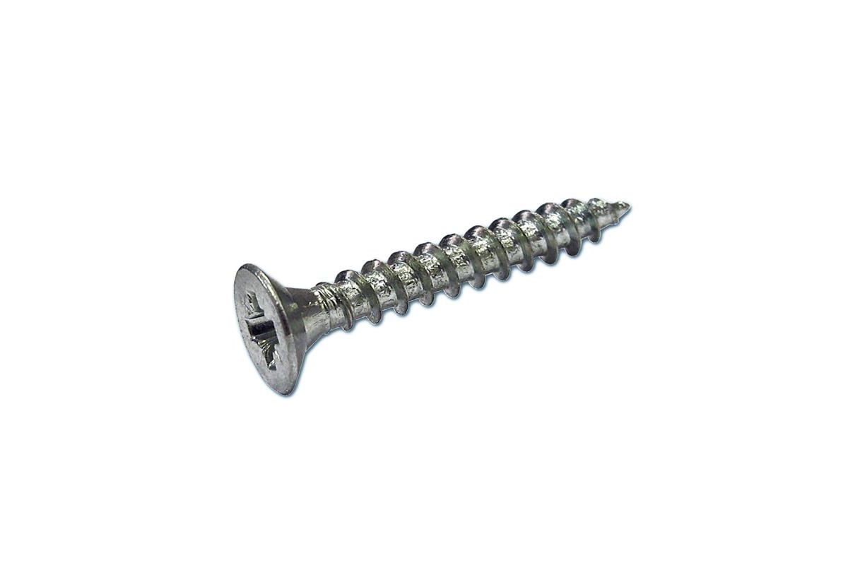 - Потайная головка, острый наконечник и крестообразный шлиц (Pozidriv №1);