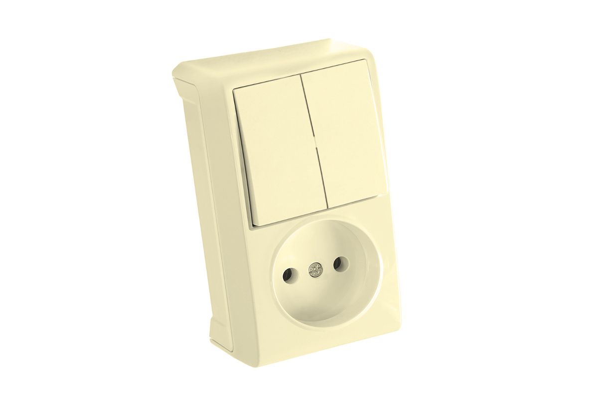 Двухклавишный выключатель + розетка без заземляющего контакта.